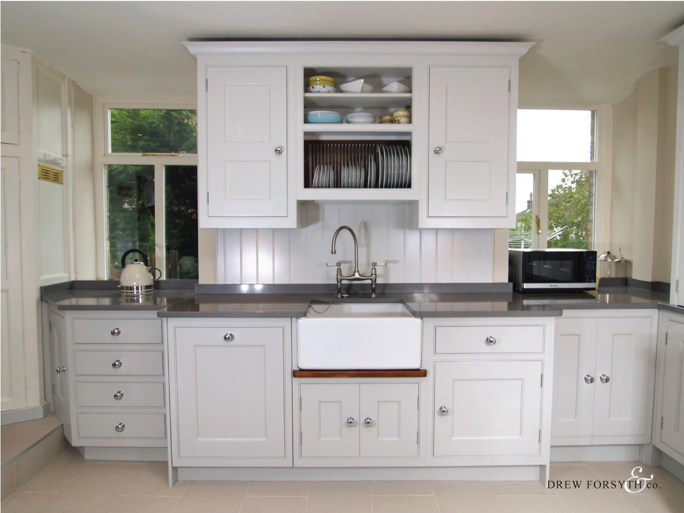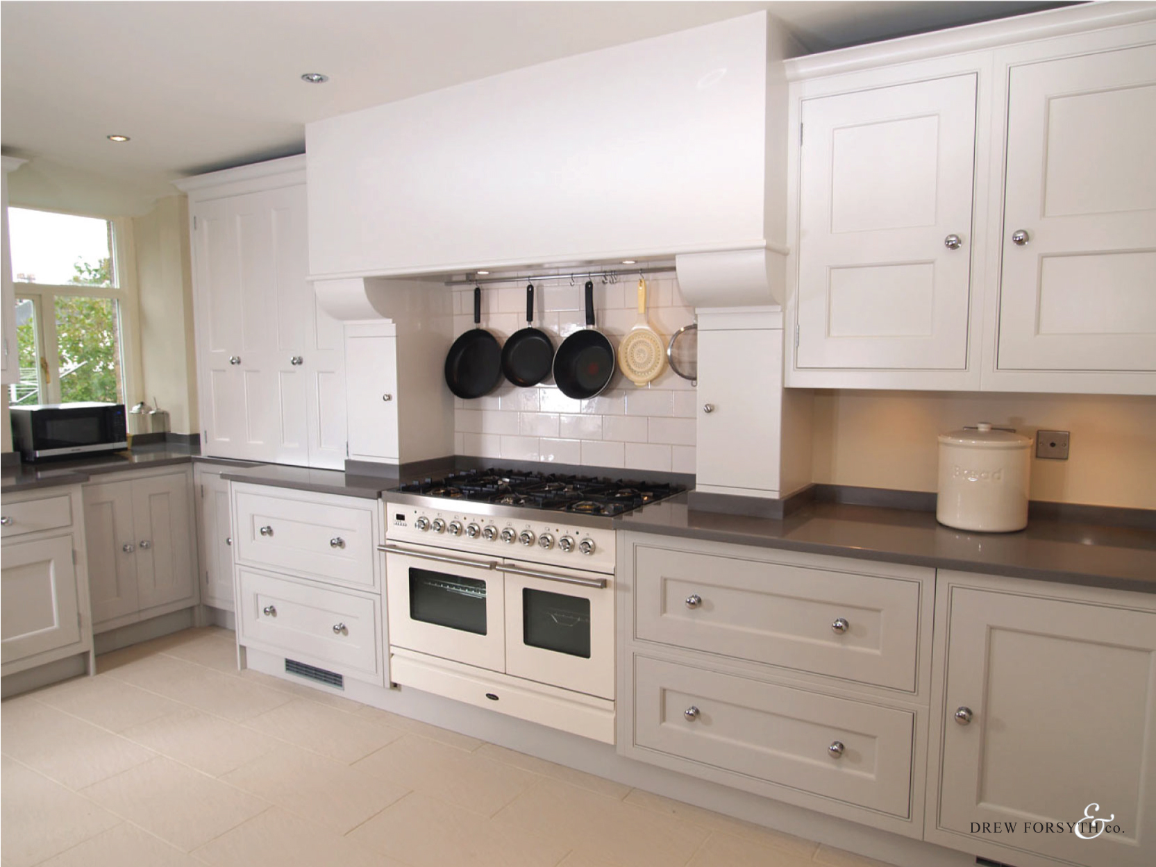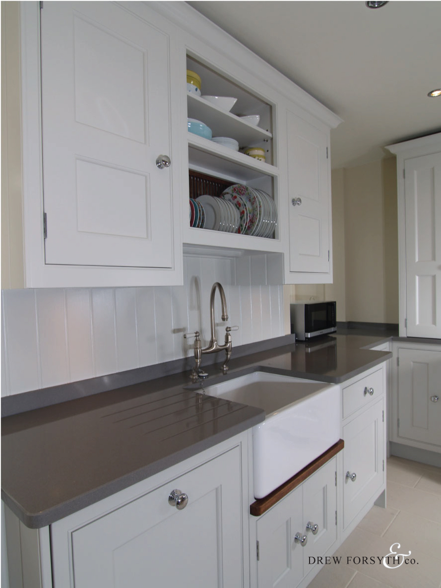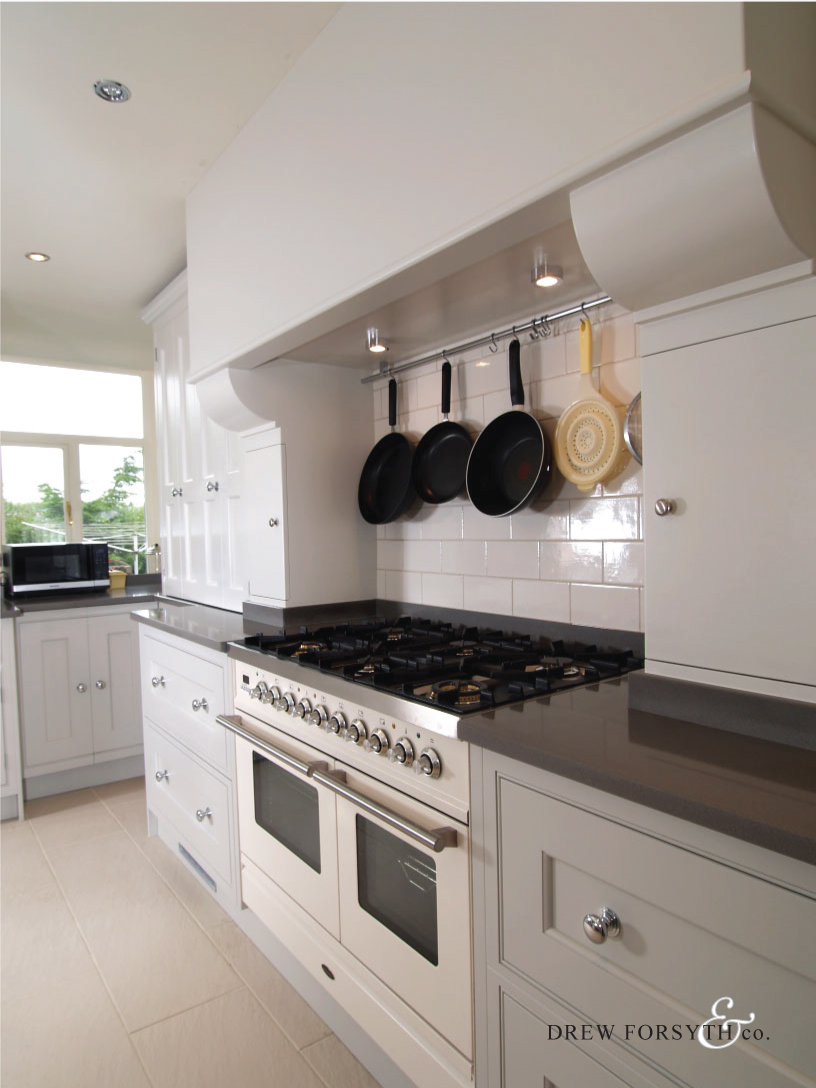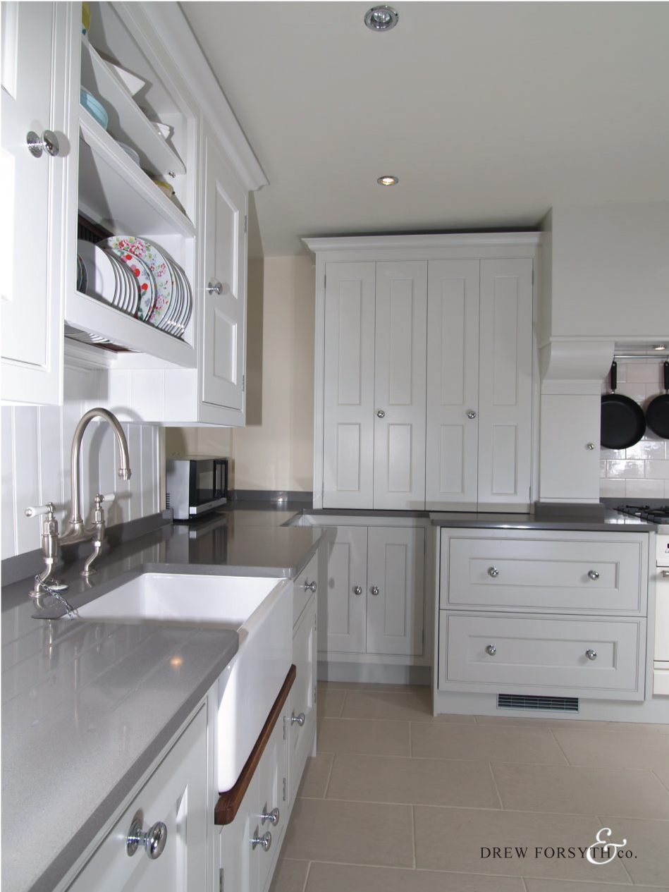 With its farrow and ball painted finish and chrome door knobs, this kitchen provides a modern twist to the classic kitchen style.